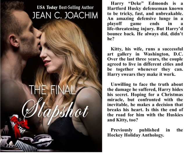 Email to me from a reader: “I read Final Slapshot in the Hockey Holidays book and really loved it. I wanted to thank you for writing it.” CJC