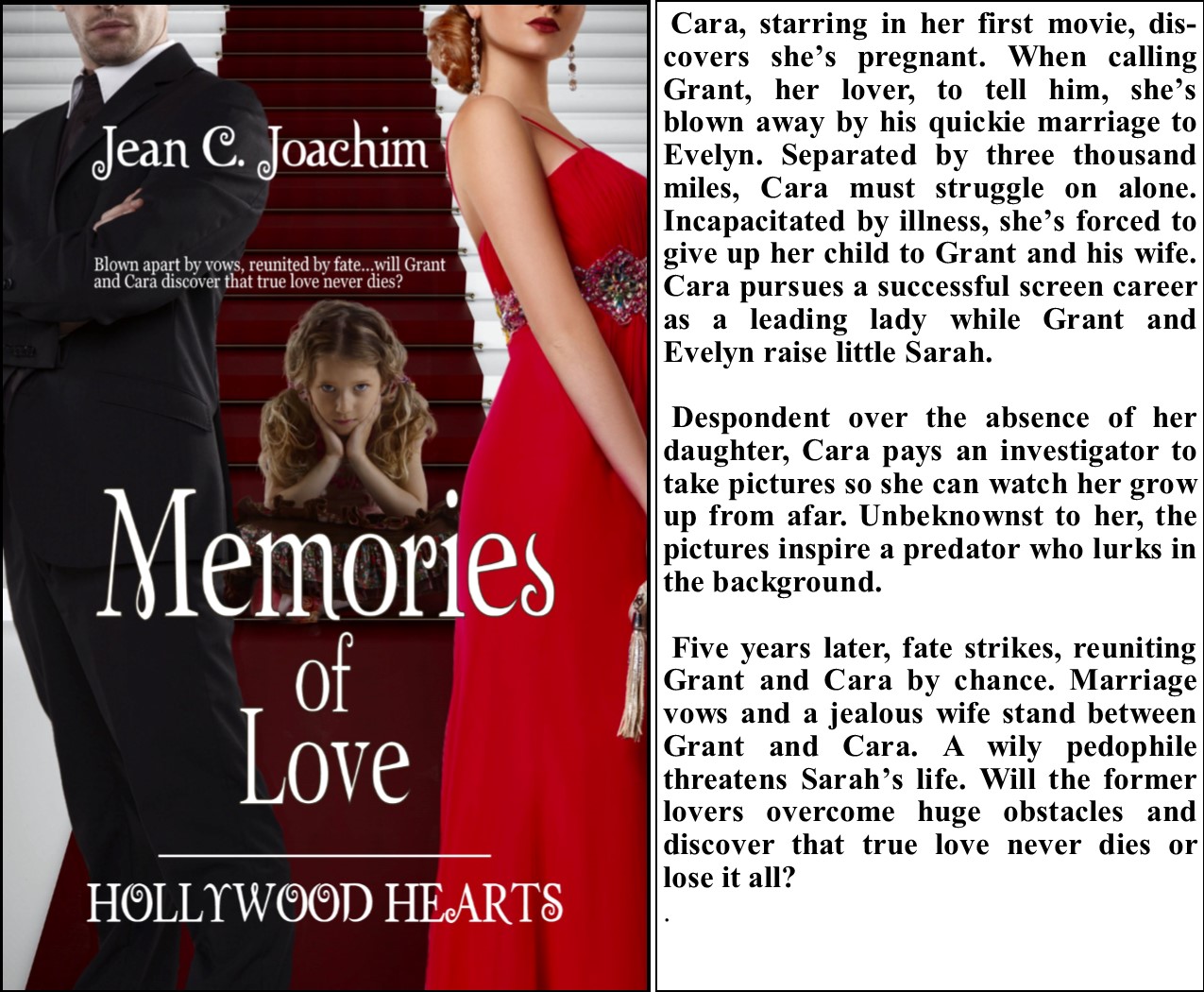 Cinnamon normally does reviews of erotica! Cinnamon has been accused of being addicted to reading erotica! Cin’s hubby really is fond of this addiction…tee hee…This afternoon I finished reading Memories of Love (Hollywood Hearts) by Jean C. Joachim.