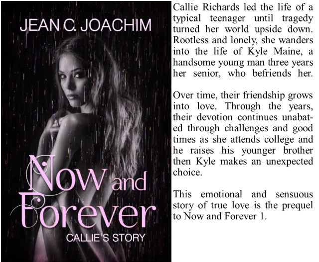 Let me start out by saying that I liked this quick story regarding Callie’s past. I’m not sure if this book could stand alone due to its fast pace storyline. However, if you’ve read the first book then you will appreciate this story. I’ve read the author’s first book in this series Now and Forever (A Love Story) and enjoyed that book but I never thought I would say this but I would advise the reader to read Now and forever A Love Story) first then read Callie’s story of her past. For me personally I was attached to Kyle because he was so sweet and such a nice guy in this book but in the other book Callie’s love interest is someone else. If the ending doesn’t matter to you then read this book first. I also enjoyed Susie and John’s little story within the book it was nice. Susie is Callie’s best friend and John is Kyle’s best friend. If you are a fan of the author then you have an idea how her books/ story lines are with a fusion of love, romance, and hurt.